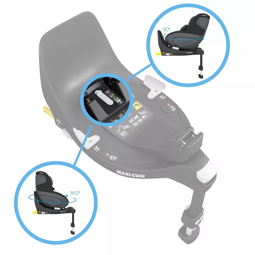 База Maxi-Cosi FamilyFix 360 позволяет быстро и легко устанавливать автомобильные сиденья Maxi-Cosi Coral 360, Maxi-Cosi Pebble 360 и Maxi-Cosi Pearl 360.