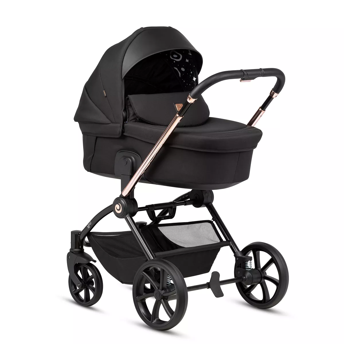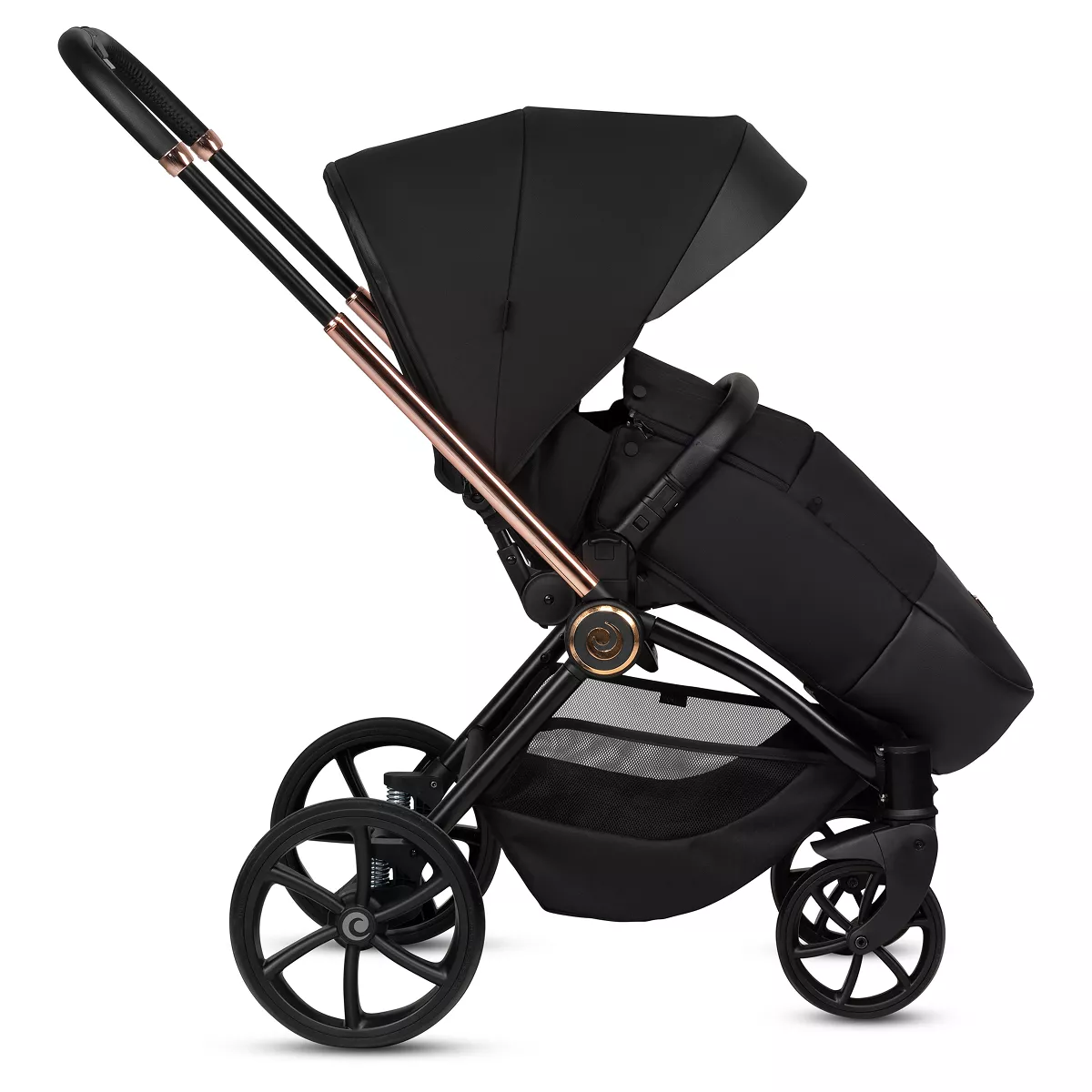 Уникальная система амортизации на каждом колесе гасит тряску даже на плохих дорогах. Коляска не прыгает и не гремит. Ребёнок едет мягко, а родители — спокойно.