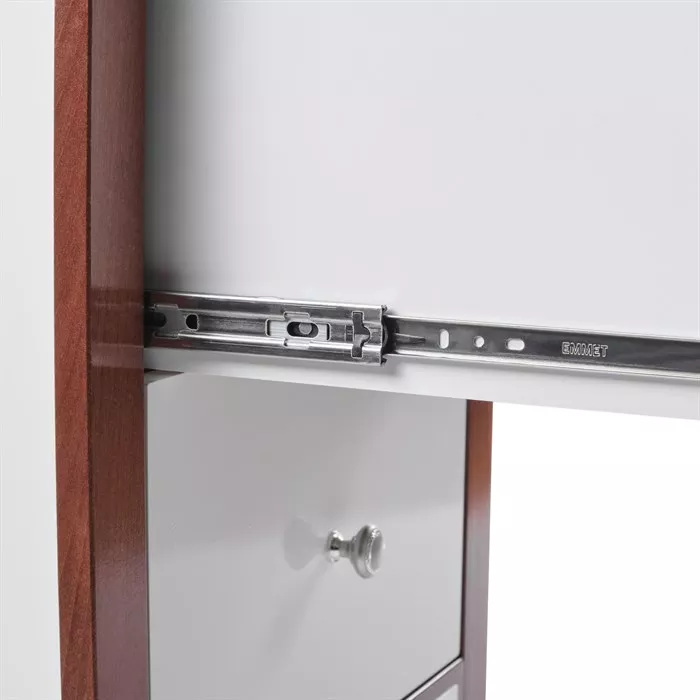 «Delight» - комод с пеленальным столиком от «Mr Sandman». Основание комода и отдельные элементы столика изготовлены из массива бука. Стенки, фасады, ящики и некоторые элементы столика изготовлены из крашенного МДФ, а задняя стенка и дно ящиков - из ХДФ. При производстве используются экологически чистые лаки и краски на водной основе. Комод оснащен тремя выдвижными ящиками, задняя и боковые стенки которых имеют высоту вровень с фасадами, что позволяет максимально использовать объем ящиков. Верхний ящик предназначен для хранения мелких предметов. Ящики комплектуются шариковыми телескопическими направляющими с доводчиками, что делает открытие ящиков более безопасным для малышей.