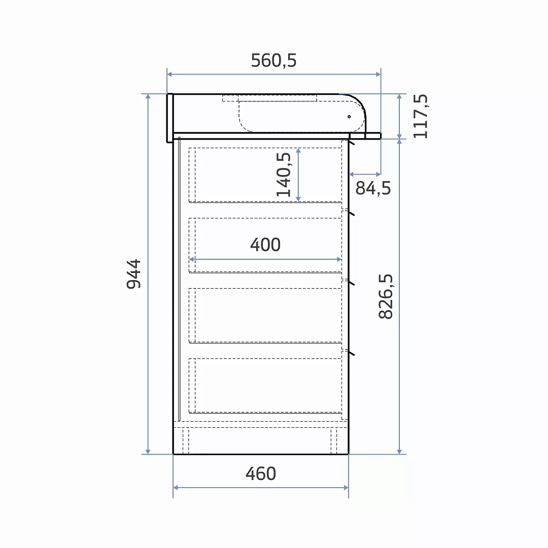 Высота пеленальной поверхности (столешницы комода) - 84,3 см